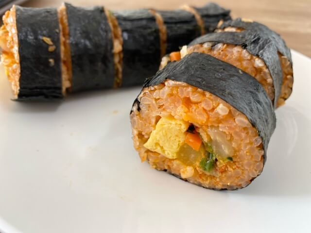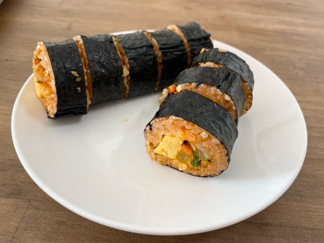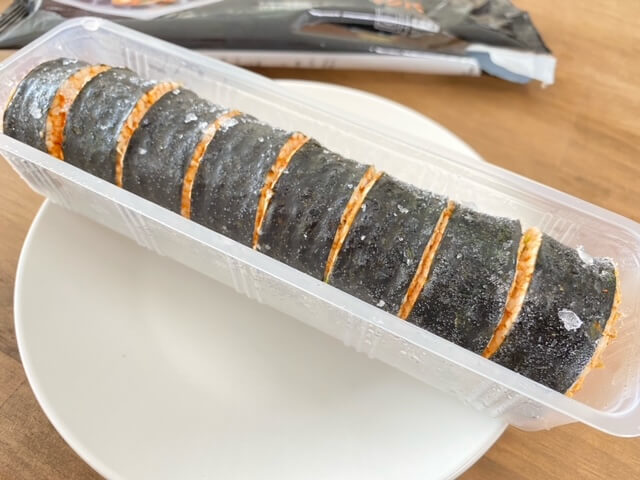 このキンパは冷凍されていますが、袋を開けた瞬間からキムチの香りがします。