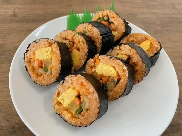 異なる点は、海苔巻きに使うご飯は酢飯ですが、ごま油などを混ぜ込んだご飯を使います。
