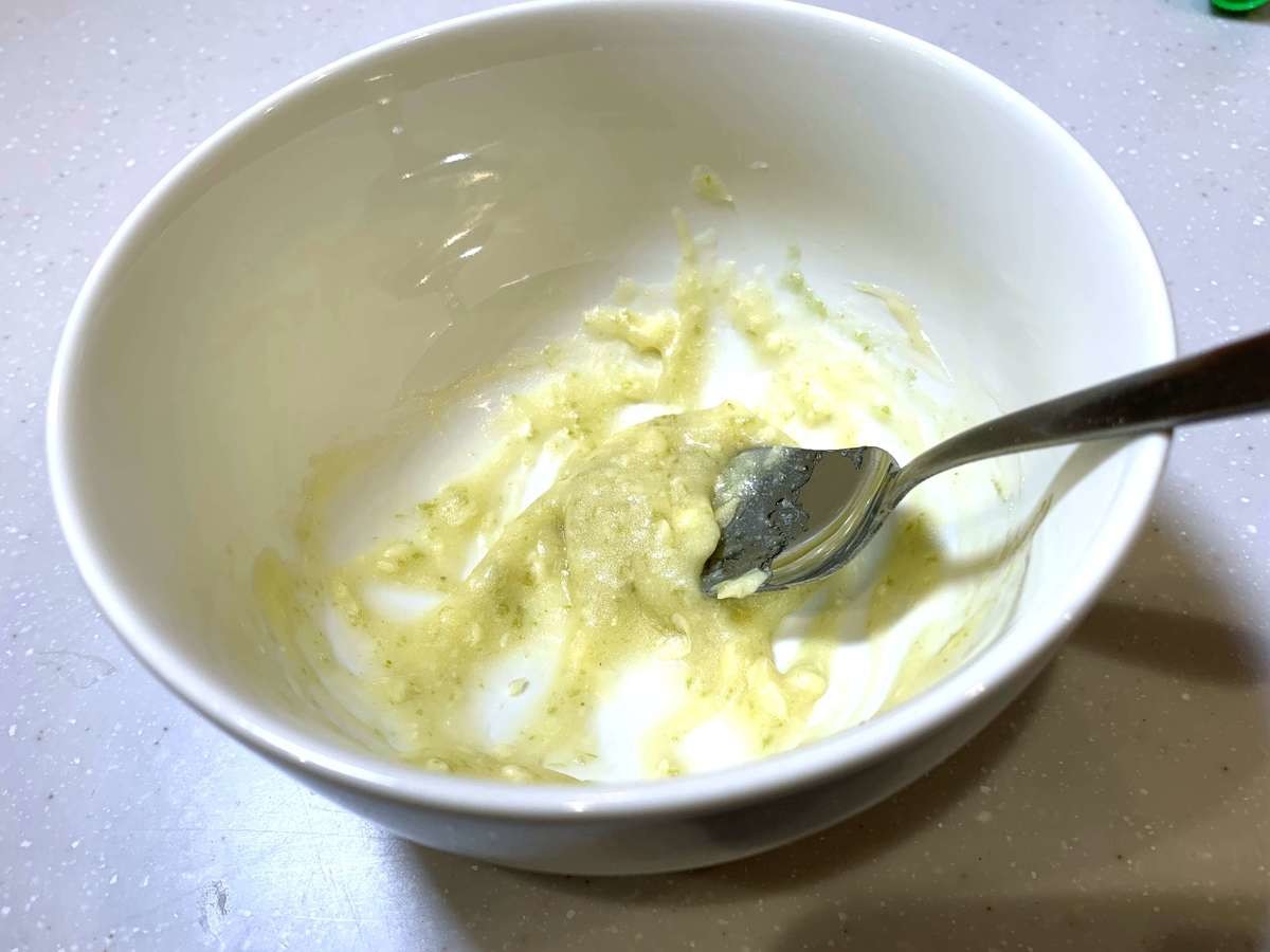 チーズトーストアレンジ①バターとはちみつ、わさびを混ぜ合わせる