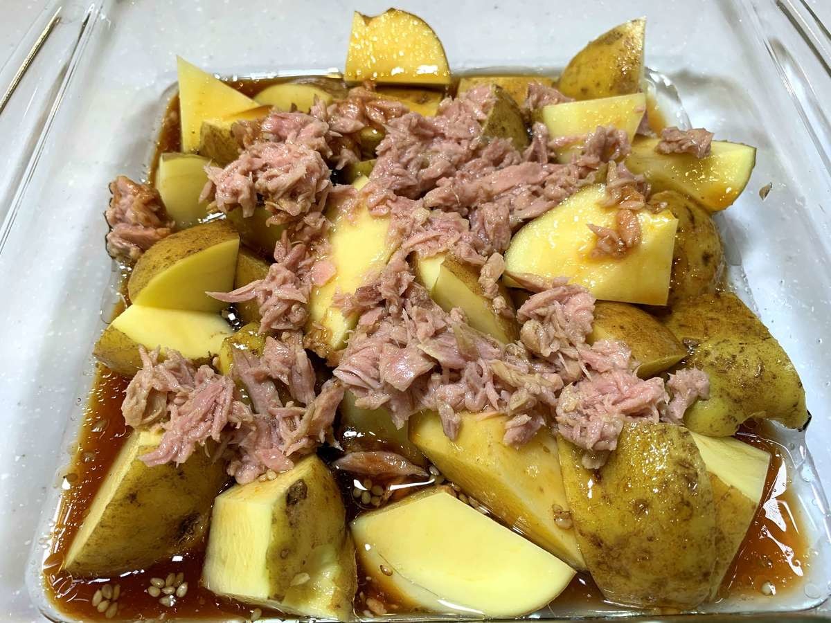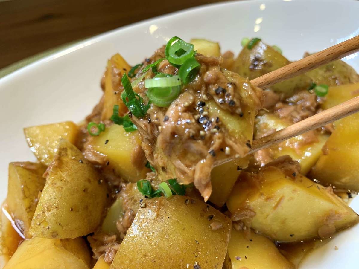 そうしたらなんということでしょう!よりじゃがいもにツナと焼肉のタレがしみ込んでいて、さらに濃厚なツナじゃがを楽しめました!