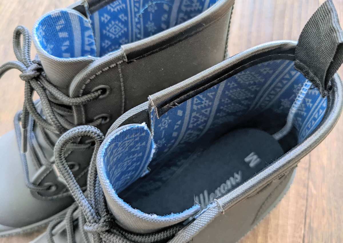 色は、ブラックとオリーブの2種類。 私が選んだブラックは、内側がブルーのノルディック柄になっています。