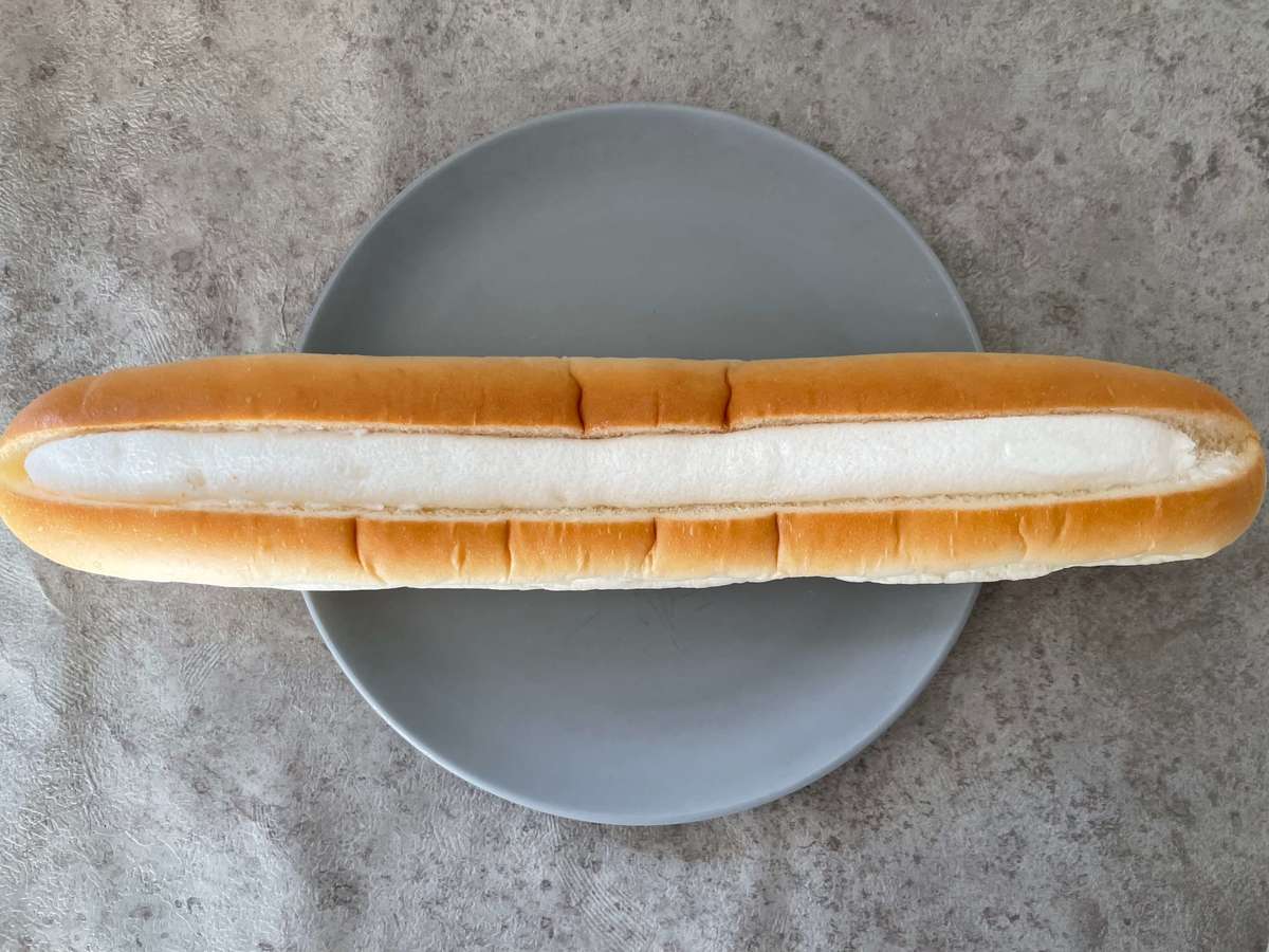 コッペパンにクリームを挟んだシンプルなパン。ホイップクリームとグラニュー糖を混ぜた、じゃりじゃりとした食感が特徴とのこと。