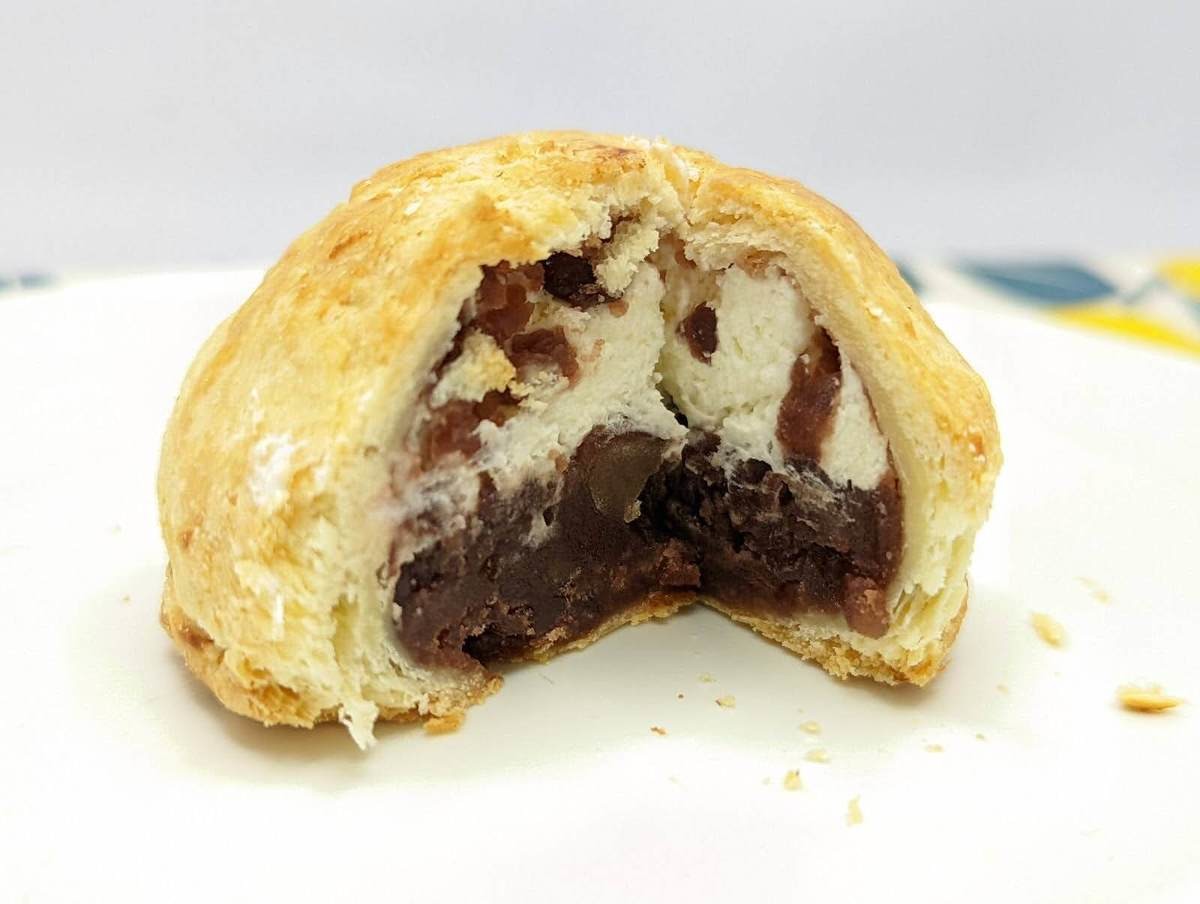 最近よく見かける「もちぷにゃ系」「シュー生地系」ではなく「パイ生地」なので、しっかりとした食べ応えがあります。