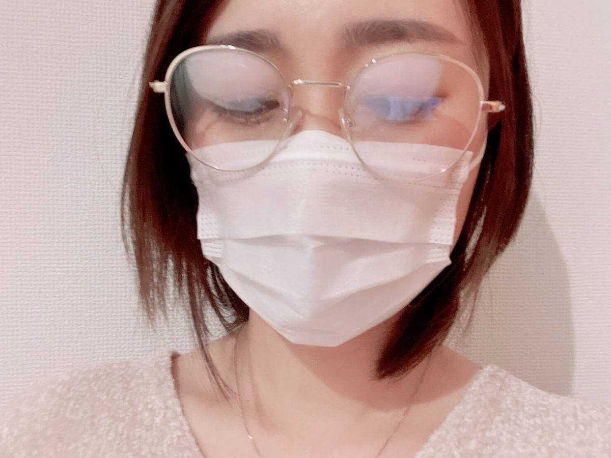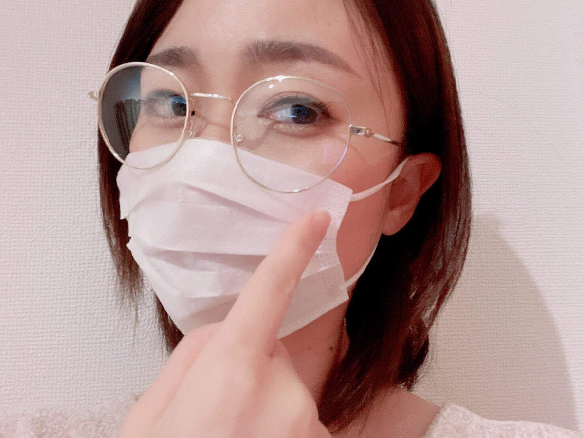ポイントは自分の顔にピッタリ合うサイズのマスクを選ぶこと。大きめマスクだと、マスクと顔の間に隙間が空いてメガネが曇りやすかったです。