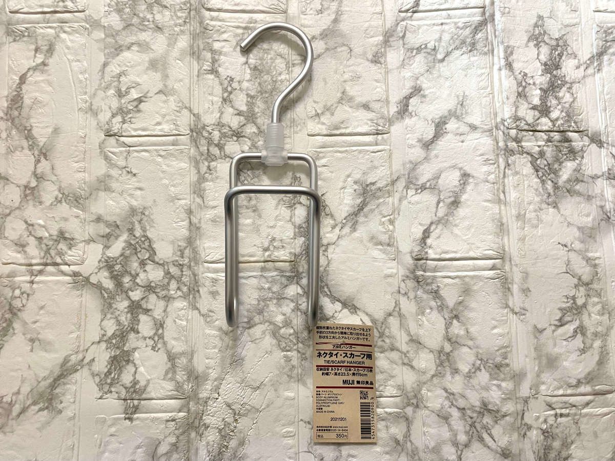 いつもは部屋まで持ち込んでいる帽子やスカーフ。花粉の時期は玄関に設置しておきたい!そんなイレギュラーな収納に活躍してくれるのが、「アルミハンガー・ネクタイ/スカーフ用」。
