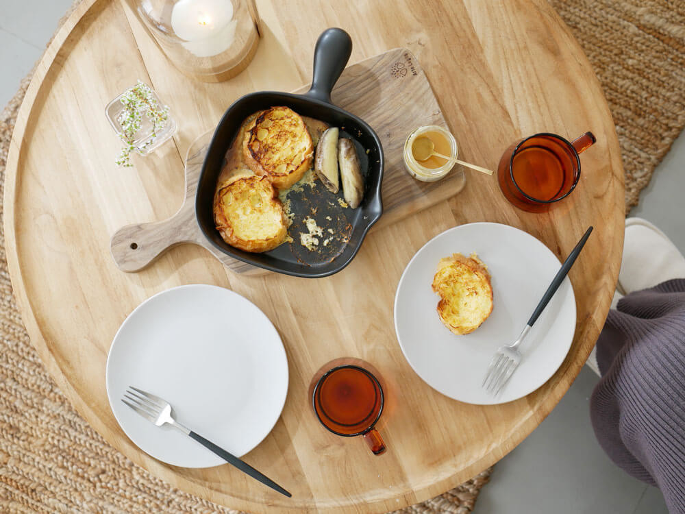 見た目もおしゃれなのでクロスを敷いた上に置けば一気に食卓がカフェ風に。気分も上がりますね。