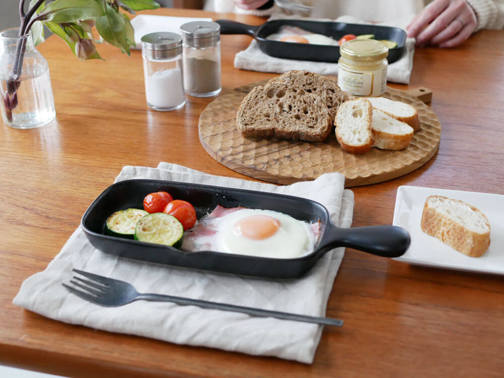 「【TOJIKI TONYA】グリルプレート」はメイン料理に加えて付け合わせの野菜なども同時に調理できるのでとっても効率的。 朝ごはんはもちろん、お弁当のおかず作りにも重宝してくれそうですね。