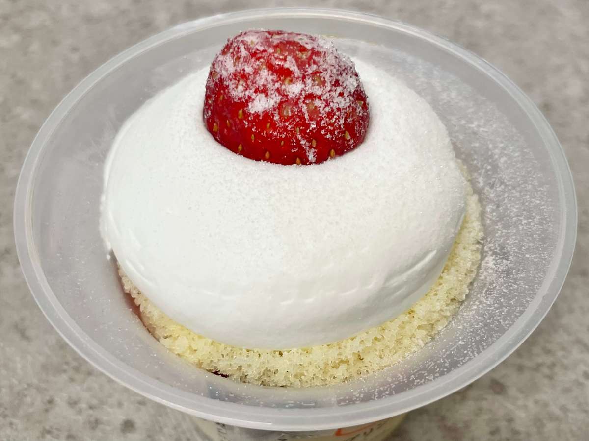 インパクト大なネーミングに惹かれ、一つ手に取ってみると「ショートケーキとプリンが一度に味わえるスイーツ」ではないですか!