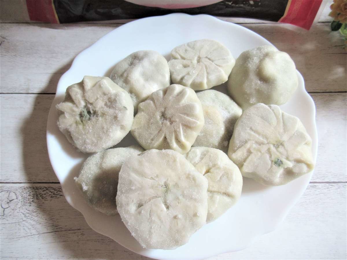ちなみに、電子レンジ調理(500W)の場合は、一度凍ったままの海老にら饅頭を水にくぐらせてから、耐熱皿に間隔をあけて並べ、ラップをして3個あたり約3分加熱したら完成です。