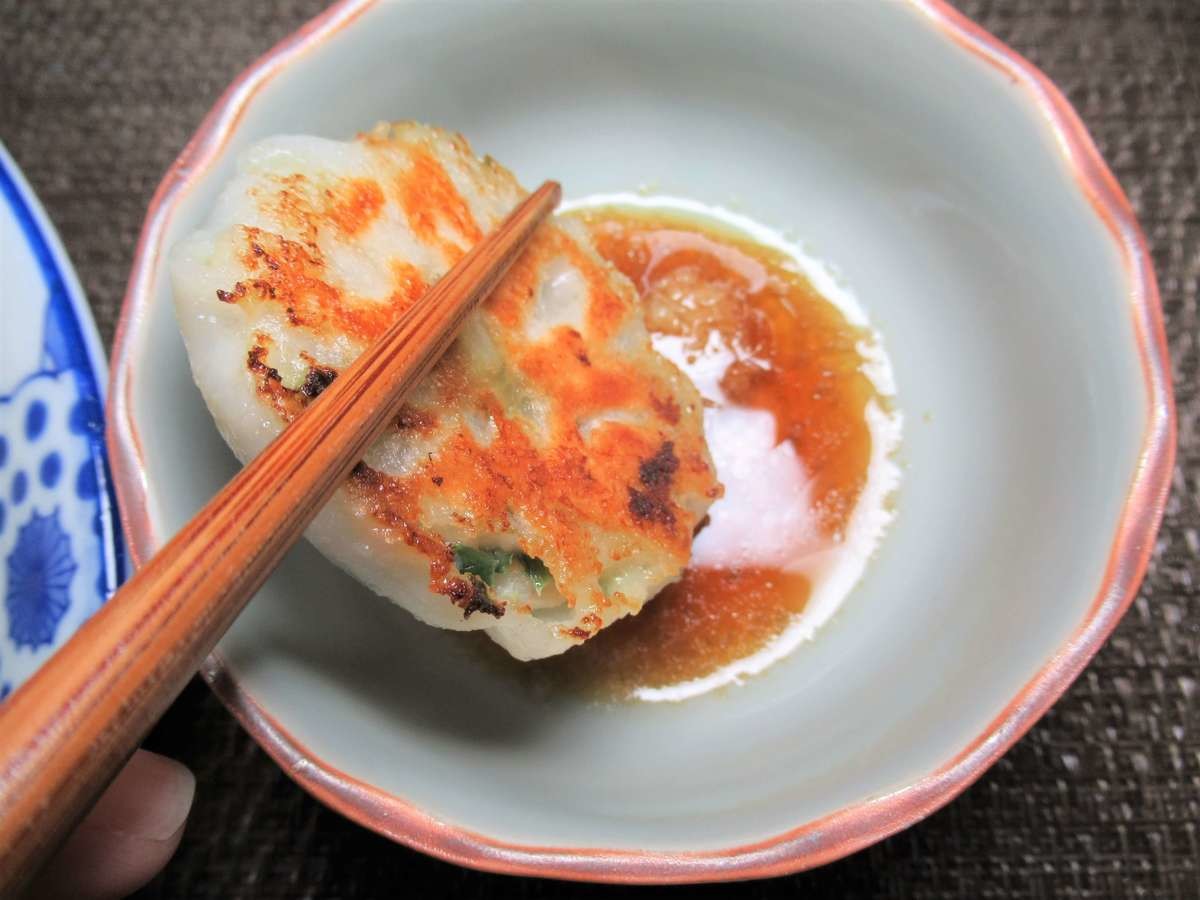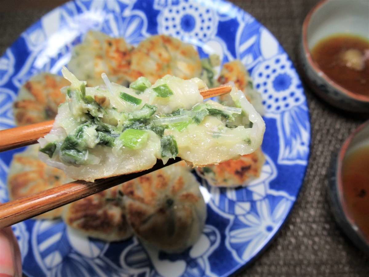 特にフライパンで焼き目をつけた部分がカリッと香ばしく、具材にニラを使用しているせいか、味や雰囲気はまさしく餃子です。