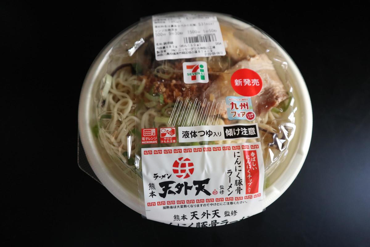 ラーメン界が沸いた!【セブン】「熊本天外天監修 ニンニク豚骨ラーメン」が背徳の極み!「スタミナ増し増し」本格おうち外食