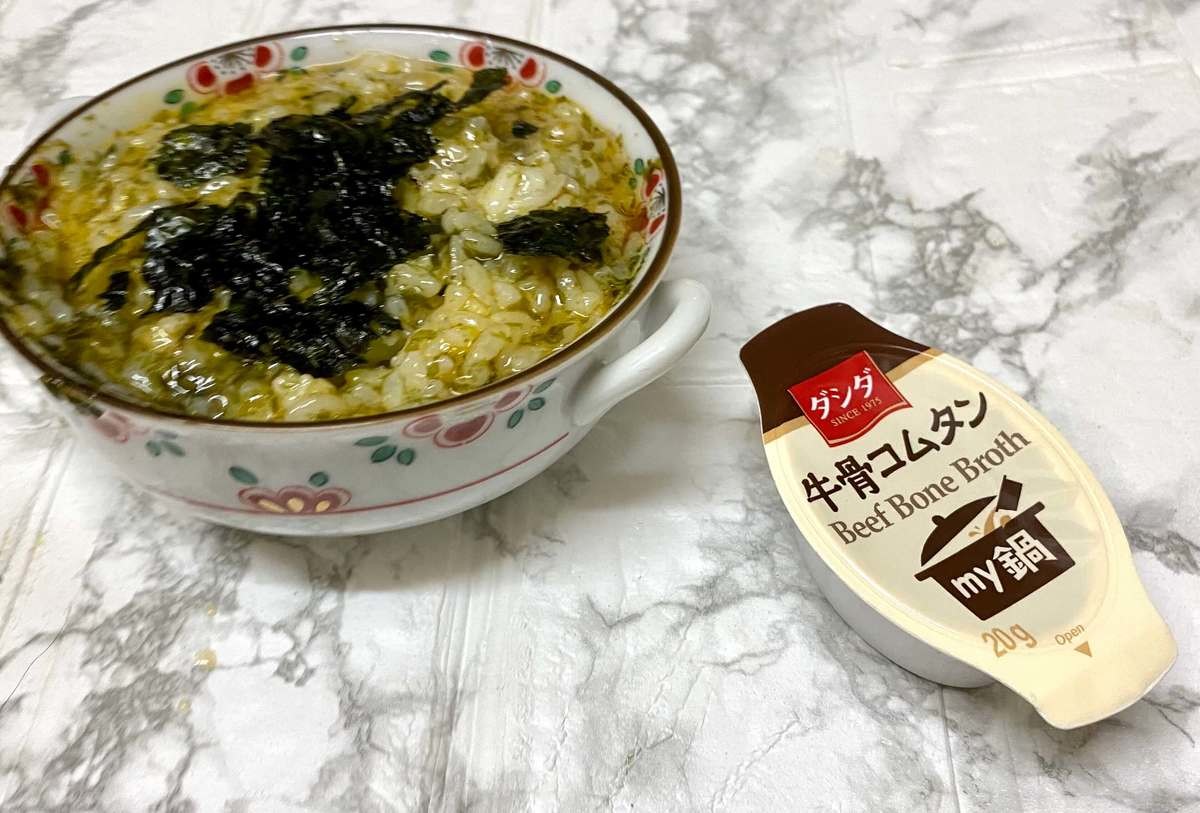今回は、生卵、ごま油、韓国のりを入れてみました。インスタグラムではちょっと贅沢に温泉卵をトッピングしている方もいらっしゃいましたよ。