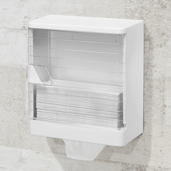 小判、中判サイズの2つ折りペーパータオルは約600枚収納可能です。 何パックか一気に入れておけるので、毎日の使用枚数の多い店舗やイベントなどで使うのも便利そうです。