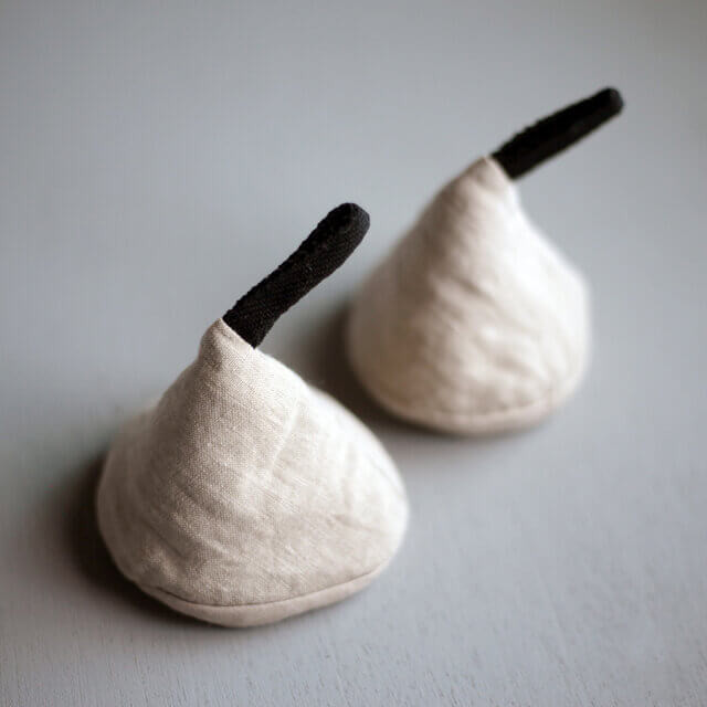 ふわふわの三角のフォルムが可愛いこちらの作品は、2つセットでとってもお得なんです。程よい硬さとハリがあるベルギーリネンを使用しているので、耐久性も◎モノトーンカラー×ビンテージ感がマッチした、素敵なアイテムの1つです。