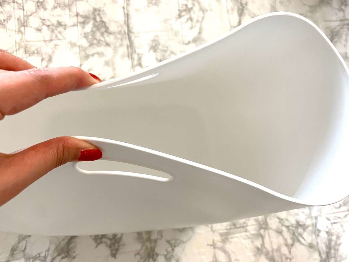 さらに持ち手部分も丸くなっているため、たくさんアイテムを入れて重くなってしまっても手が痛くなりにくく、メリットが盛り沢山◎