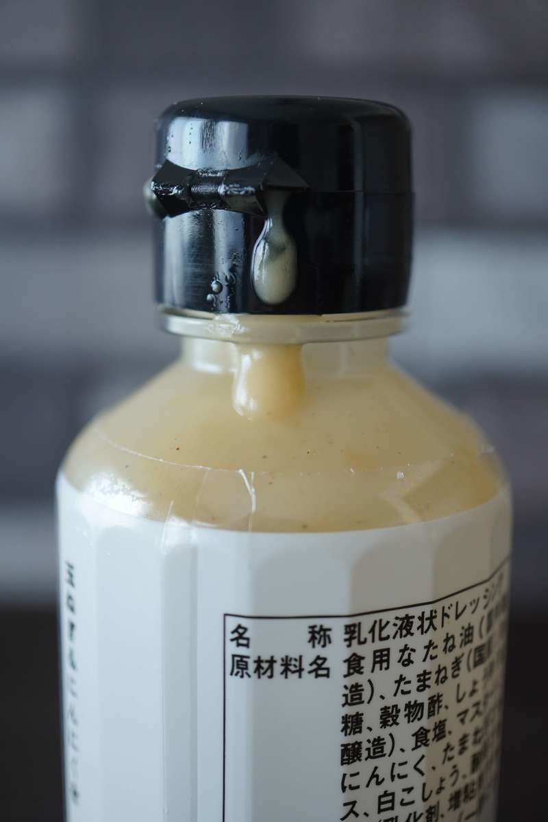 キャップの部分にドレッシングが残っていない状態でフタをするとある程度は液だれを防げますが、使用するたびにボトルを拭かなければいけないというのが難点です。