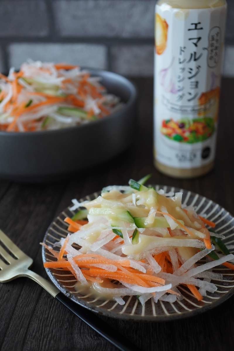 エマルジョンドレッシングはどんな野菜にも合うので、我が家ではあっという間になくなってしまいます。 さっぱりとした大根サラダやレタスなどの葉物野菜のサラダはもちろん・・・。