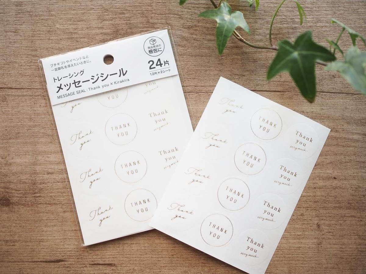 薄いトレーシングペーパーの素材でできたシールに、ゴールドの「thank you」の文字が高級感があります。