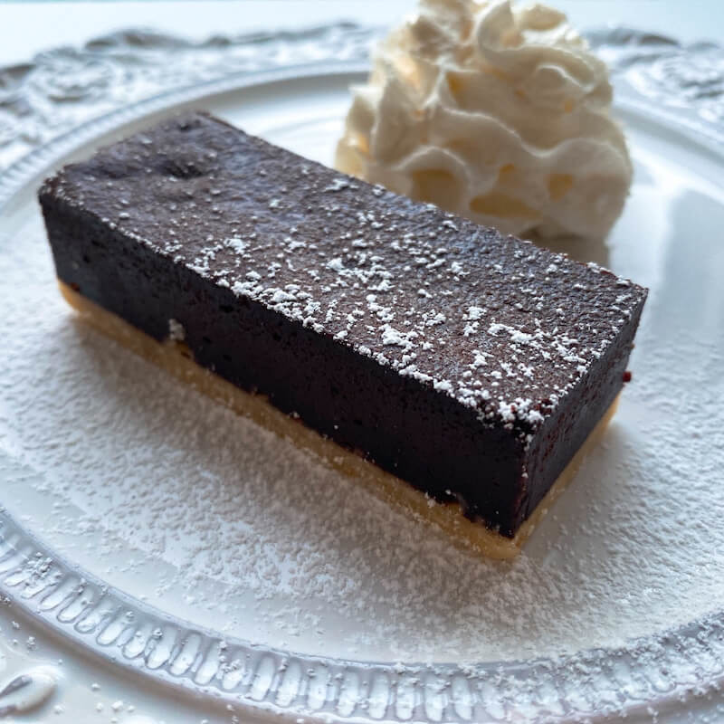 今回は、4分の1にカットしてクリームを添えて、粉砂糖もふってみました。