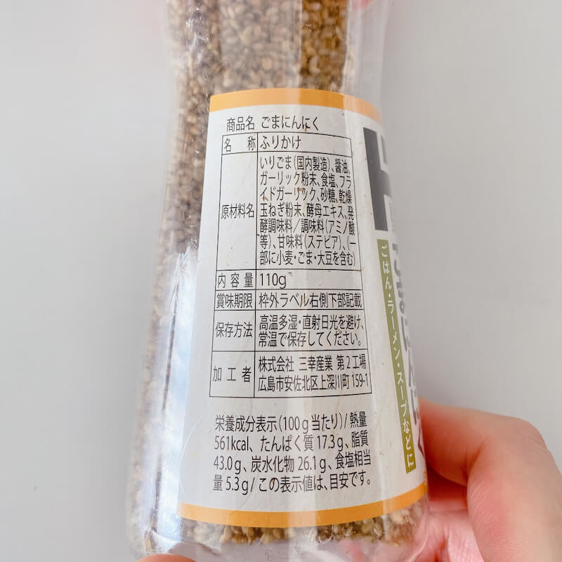 メインはごまで、ガーリックパウダーやフライドガーリック、玉ねぎなども入ってて、おいしいもんがぎゅぎゅぎゅ〜っと凝縮されててね...