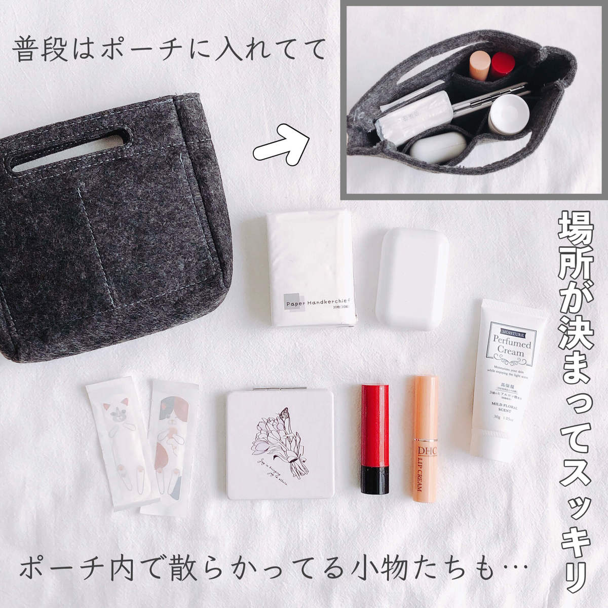 普段はポーチに入れていて、ポーチ内で散らかる小物も、場所が決まってすっきり!ポーチに入れるよりこっちの方が断然使いやすいです♪