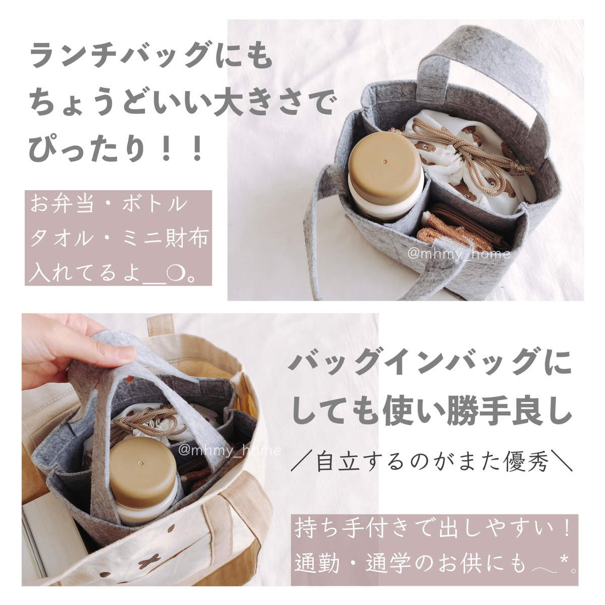 フェルト素材のかわいい仕切りバッグが220円(税込)と衝撃価格!