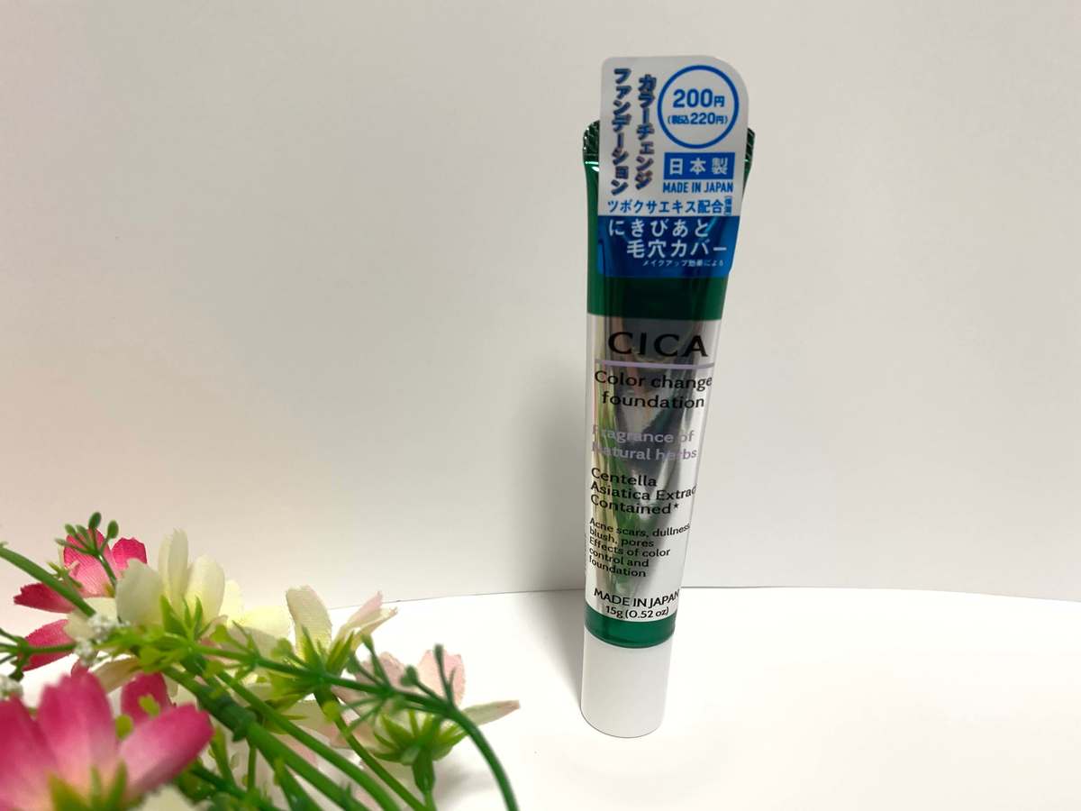 こちらもCICAローションと一緒に再入荷されていた「CICAカラーチェンジファンデーション」(220円税込)。にきび跡や毛穴のカバーに使えるとのこと。