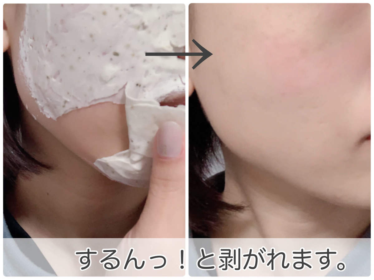 15〜20分後パックを剥がして化粧水でお肌を整えます。「するんっ」と気持ち良く剥がれるモデリングパックは、ゴムのように柔らかく弾力があり不思議な感触です。