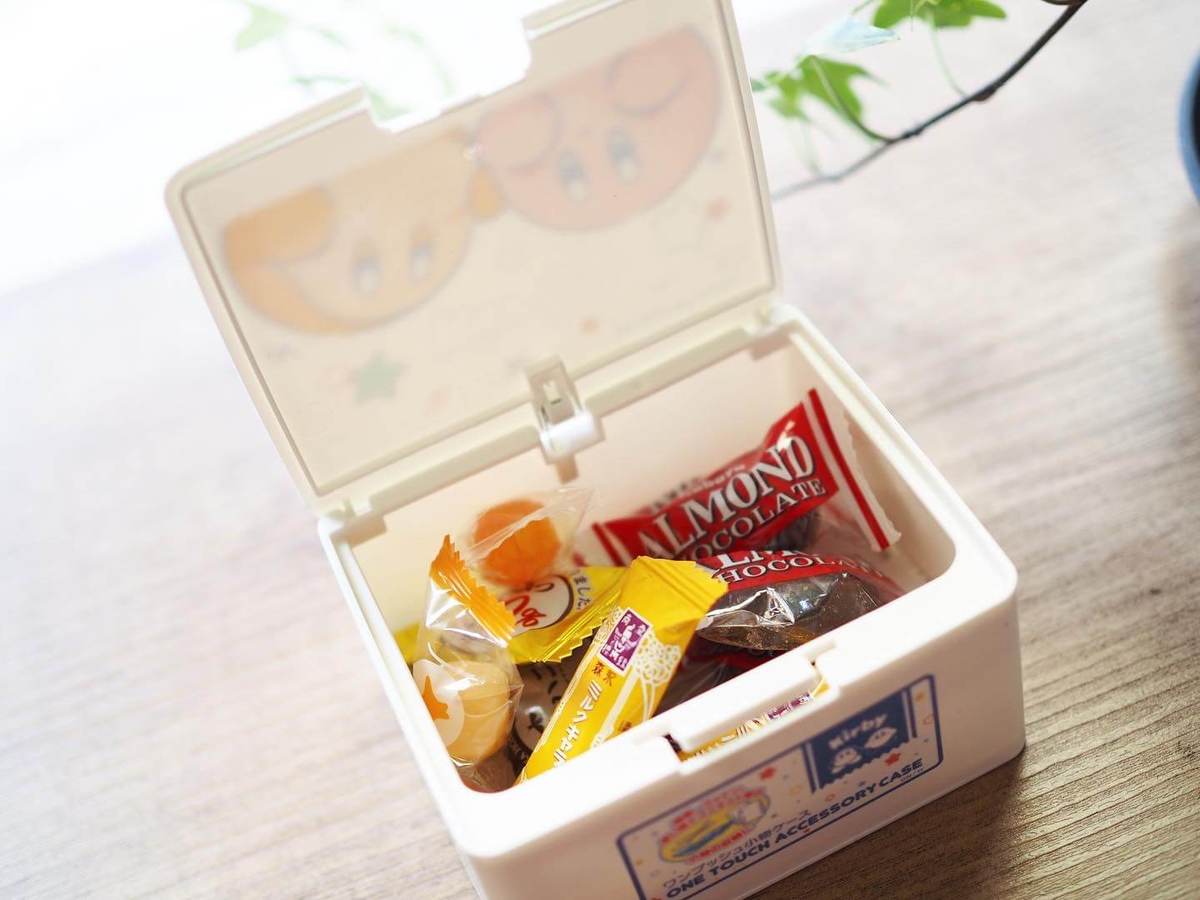 続いてご紹介するのは、ワンプッシュ小物ケースです。手前のボタンを押すと蓋がパカッと開くので片手で開閉できるのがとても便利です。