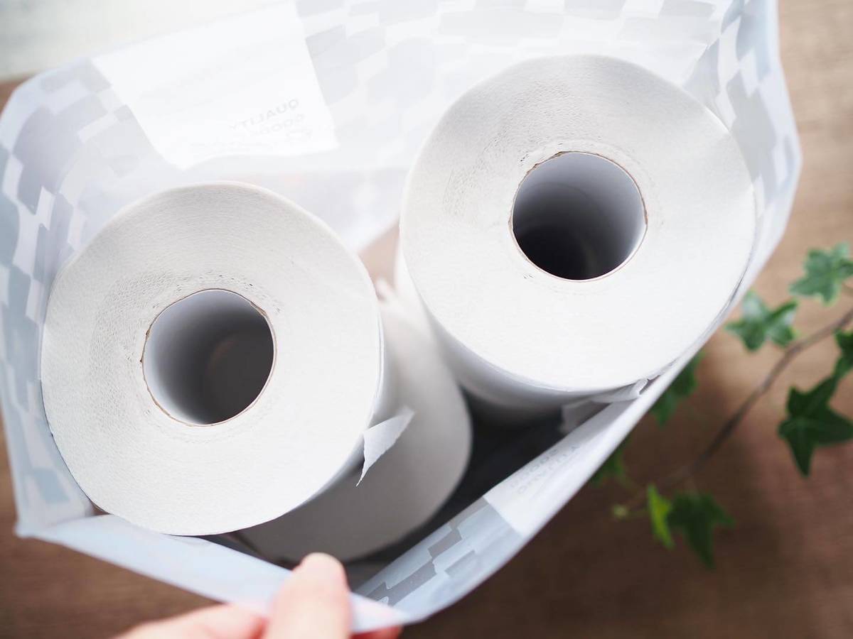 ゴミ袋以外にも、トイレットペーパー収納にもおしゃれに活用できることを発見♪
