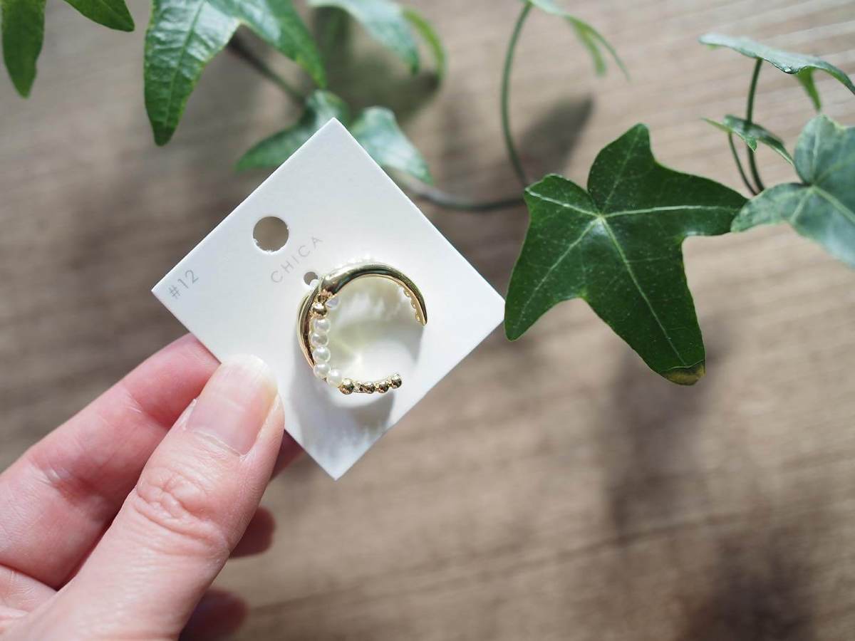 「パール切替メタルリング」は上品なパールとメタルリングの要素がミックスした指輪です。高見えな指輪が1つ330円(税込)で買えるのはお財布にも優しくて嬉しい♪