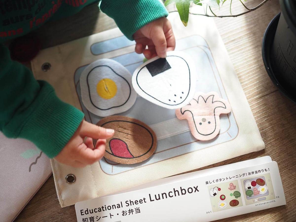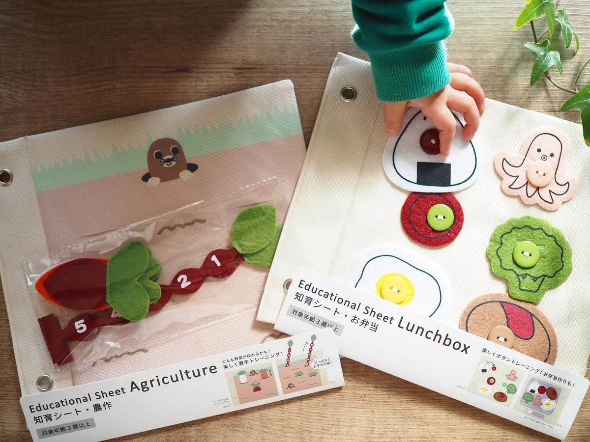 続いてご紹介するのは、ボタン留めのトレーニングや数字を遊びながら楽しく学べる知育シートです。