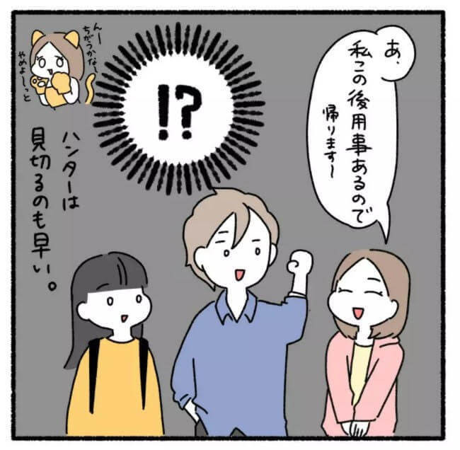 ミワカモさん曰く、本当に用事があったのか見切りをつけて帰ったのかは謎に包まれているとのこと……。さやかちゃんとダン君はこの後連絡とらず、関係は自然消滅したそうです。
