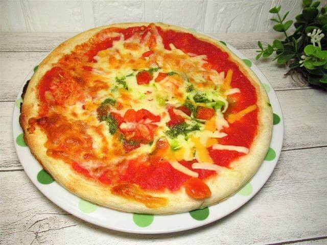 出来あがりの目安は……フチの部分がキツネ色にこんがり焼きあがり、チーズが溶けていたら完成です。