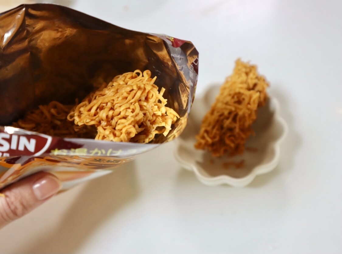 チキンラーメンアレンジ①チキンラーメンを1/4取り分ける