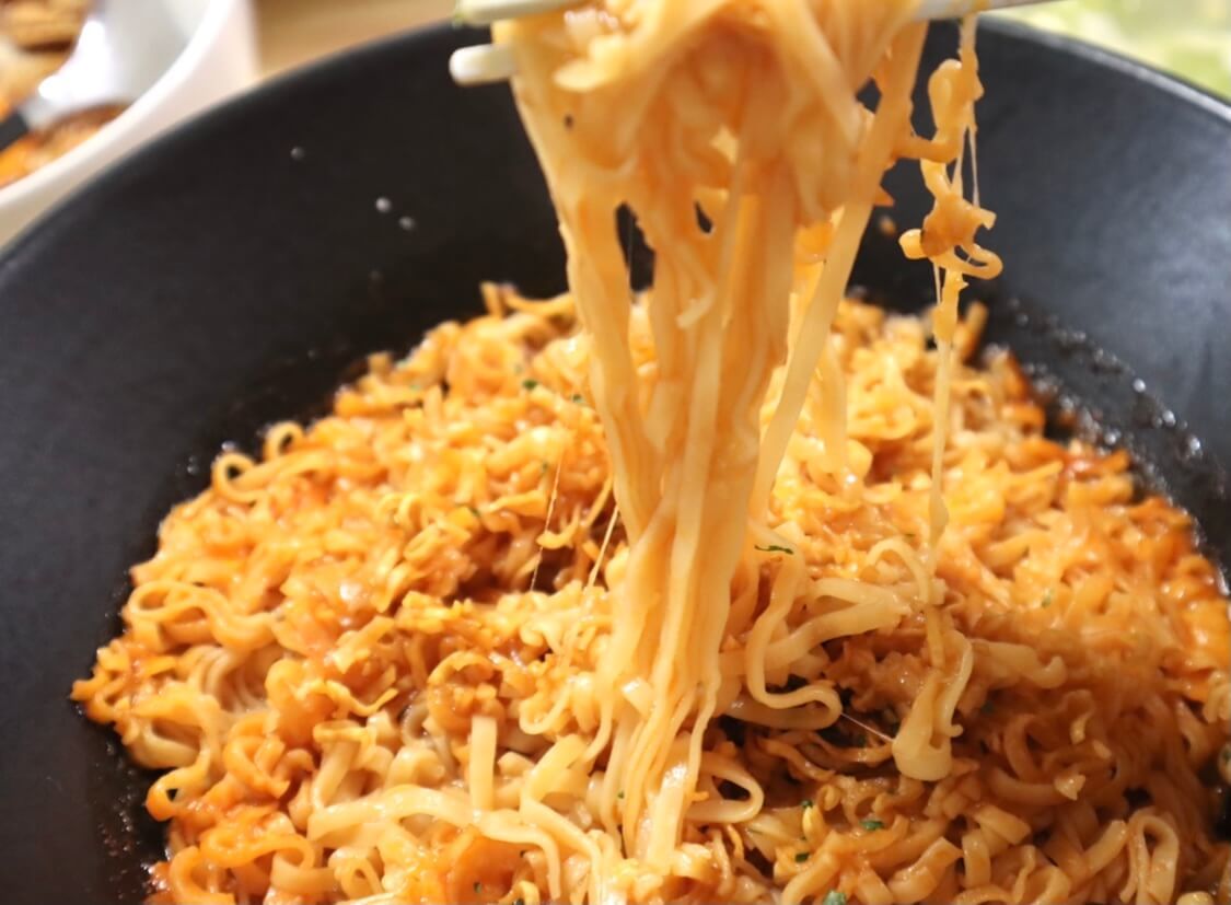いざ食べようと麺をつかんだ時に、チーズがびよ~んと伸びました♡これはチーズ好きにはたまらないサプライズですよね!