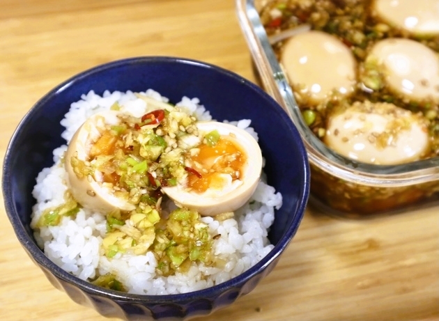 麻薬卵をご飯に乗せて食べてみた!