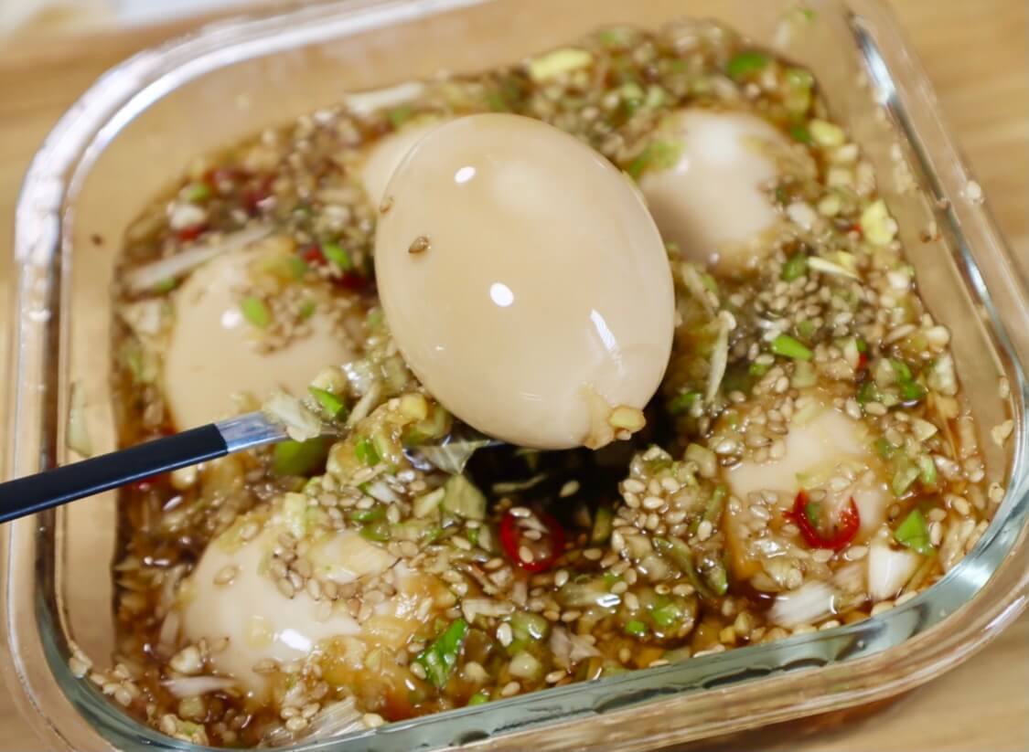 見た目はいつもの味付け卵と変わりませんが、蓋を開けた瞬間から薬味の匂いがスゴいです…!