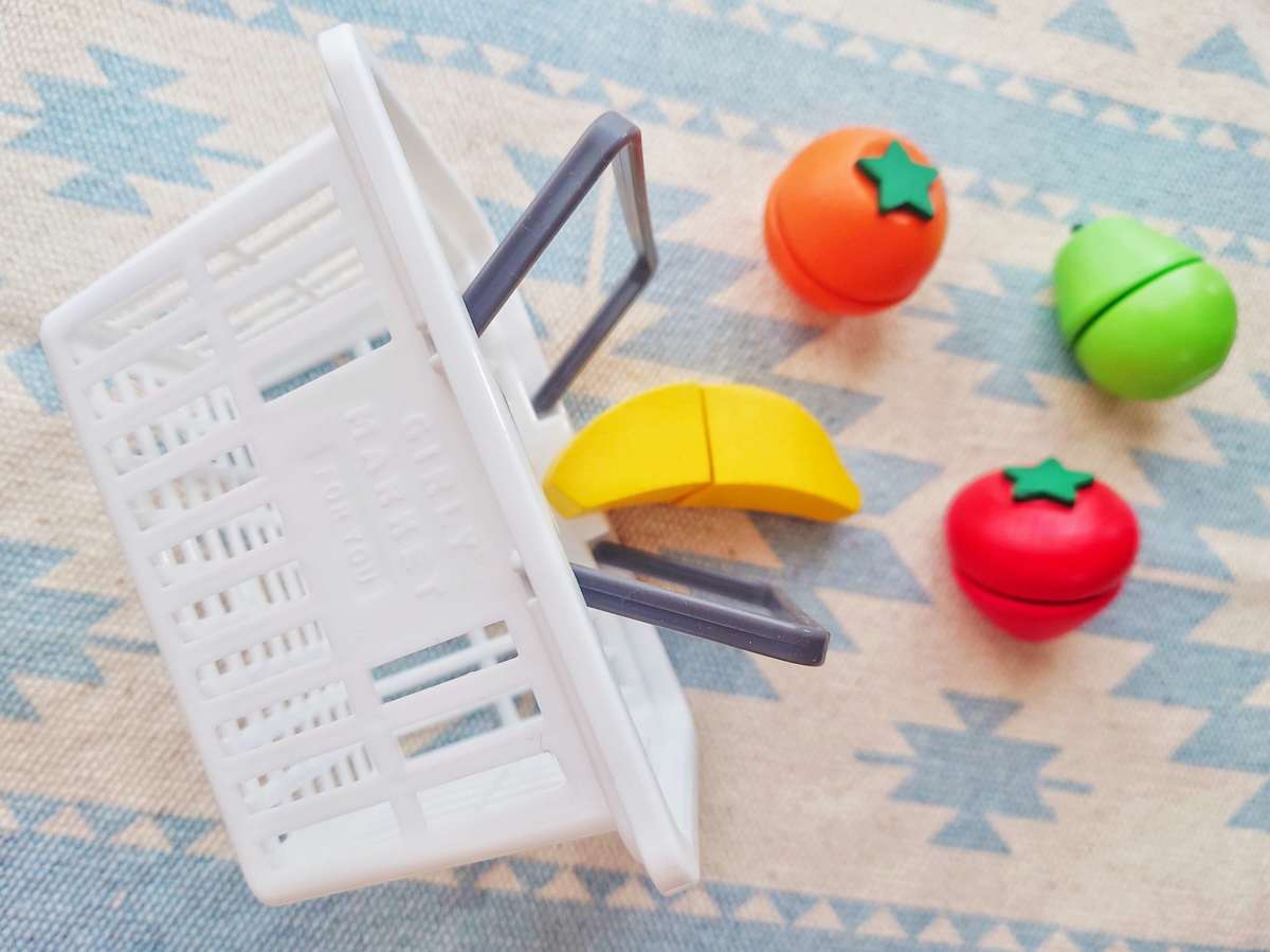 野菜や果物もおもちゃを入れてお買い物ごっこをしたり、アイディア次第で楽しさ無限大です♪