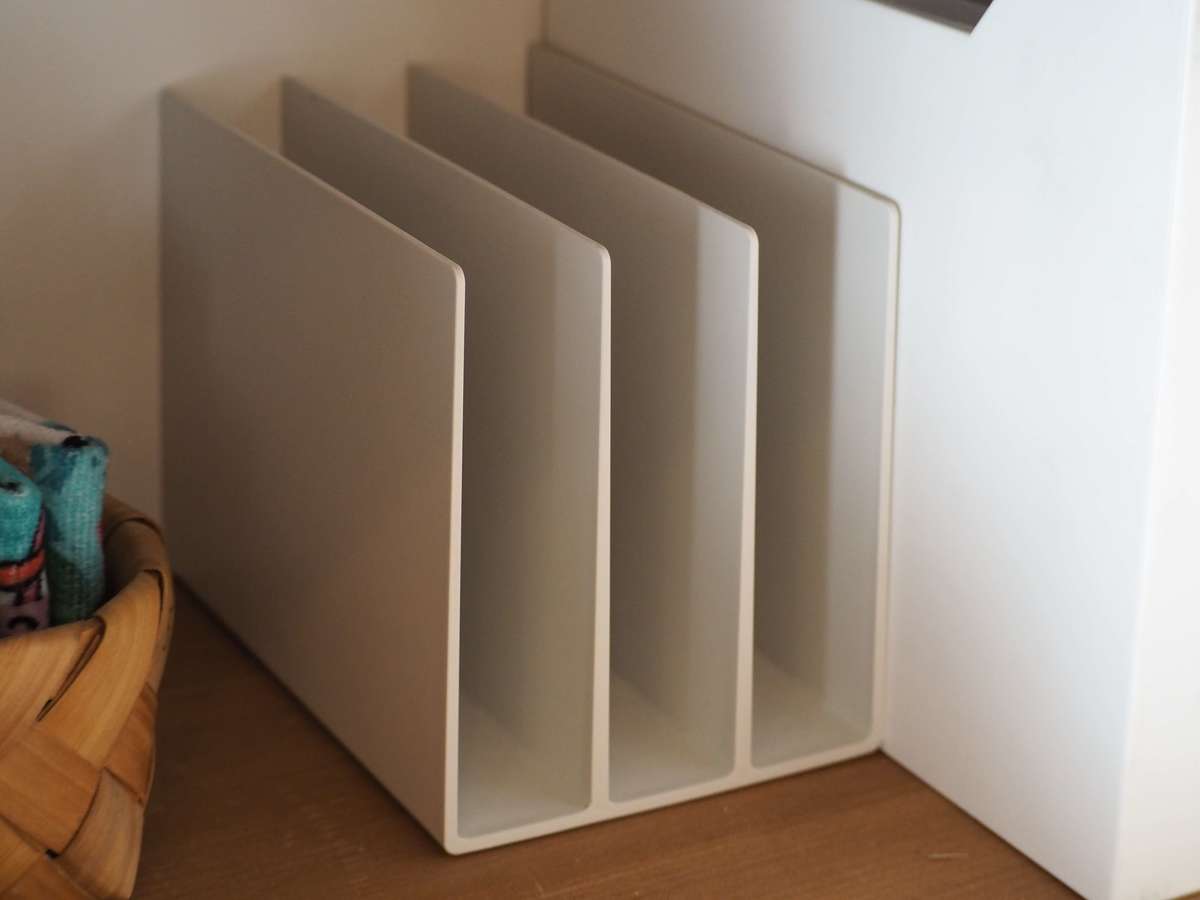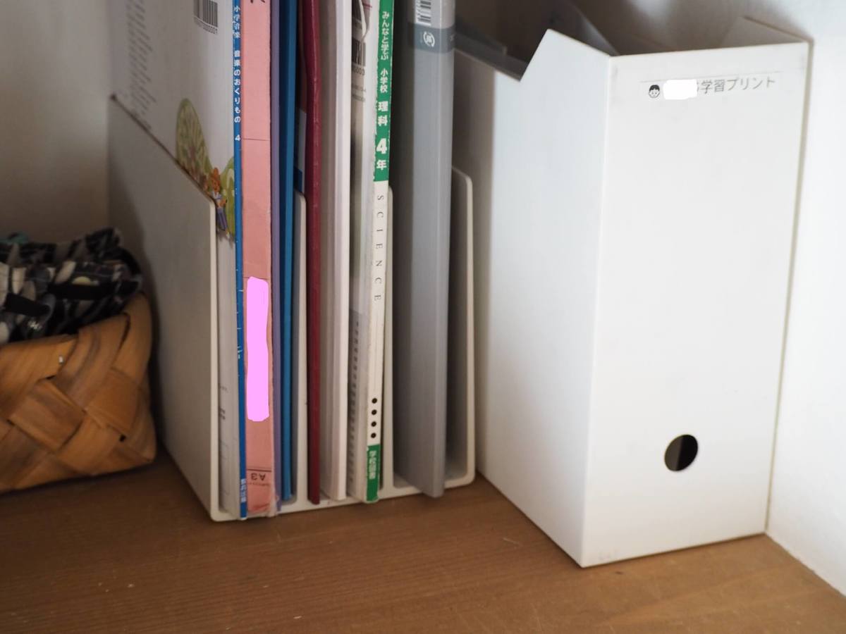 リビングに教科書類を置くと、なかなか生活感が溢れるので、はじめはファイルボックスのようなものに入れて見えにくい形で収納していたのですが、そうすると出し入れもしづらく、片付けへのハードルが上がってしまったので(笑)。