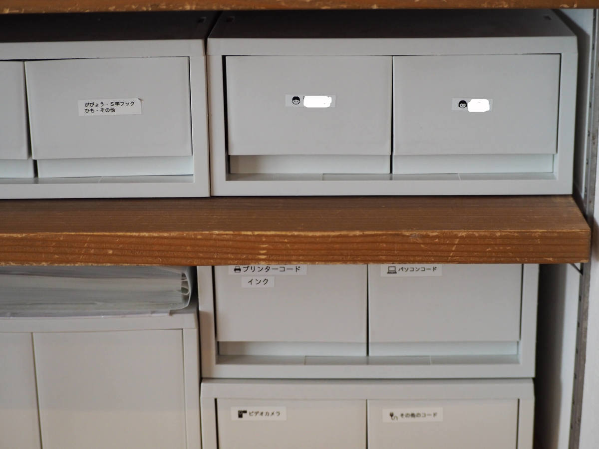 引き出しの中には、可動させられる仕切りがついているので、細々したものの収納に最適です。 移動ポケットや名札の収納にもオススメですよ!