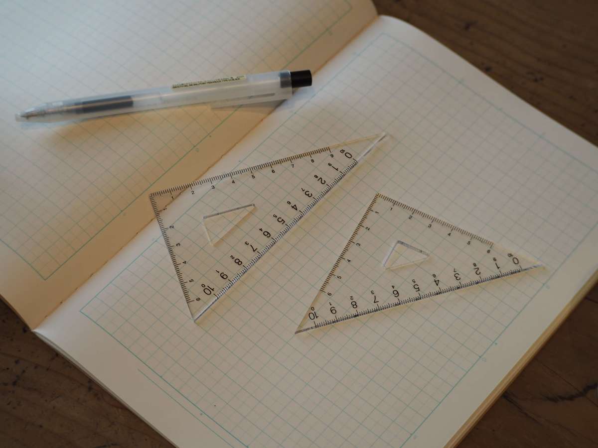 無印良品で三角定規やノート類の取り扱いが始まりました。