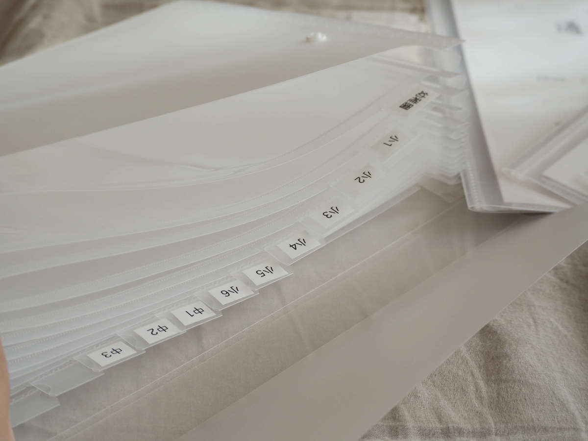 中に13ポケットついているアコーディオン式のファイルなのですが、これに何を入れているかというと……。
