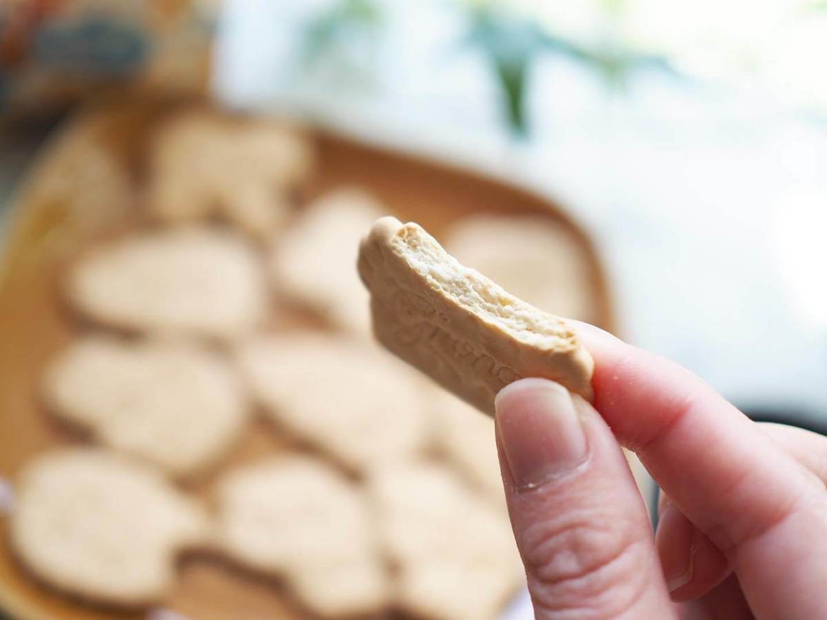 ビスケット菓子「マリー」風のサクサク軽い食感で、油分や塩が手につかないから汚れにくいのも嬉しいポイント。