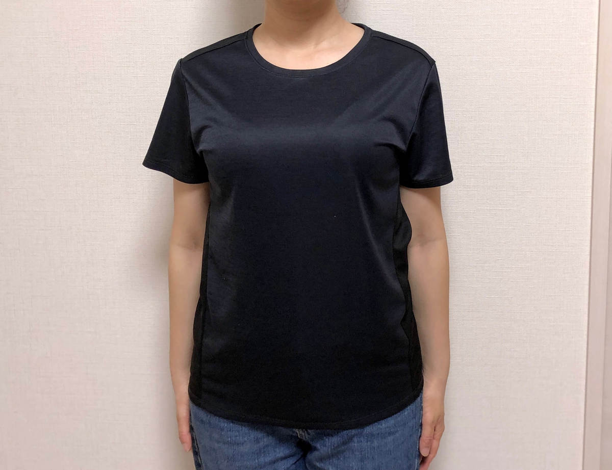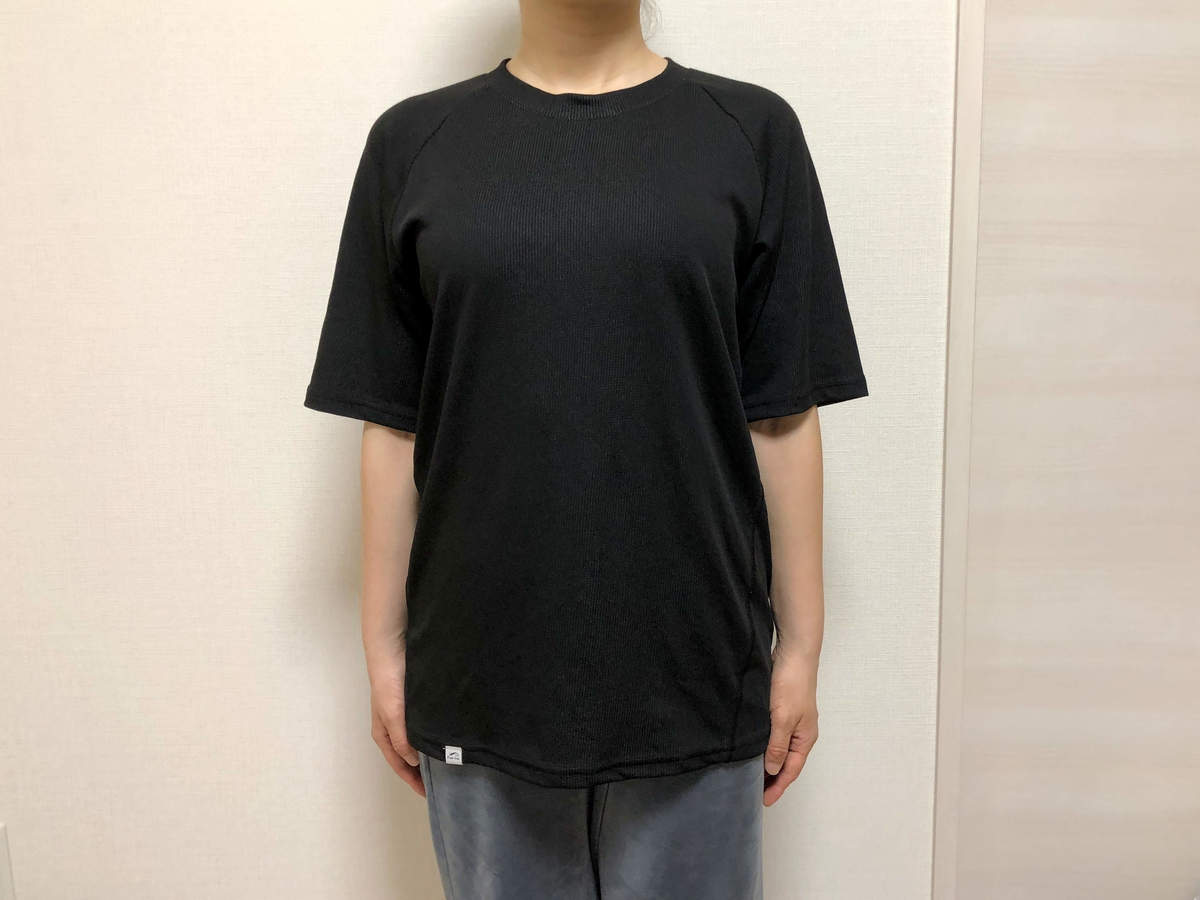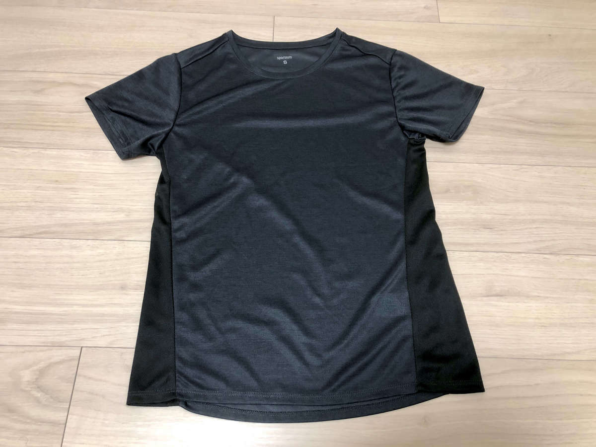 こちらは、運動に適したTシャツだと思いますが暑い季節のお風呂上がりにも着たいかも! 夏場のお風呂上がりって、服を着るのもけっこうだるくなりませんか? 黒だといろいろ透けにくいですし、580円ならパジャマとしても安いので、よいと感じました。