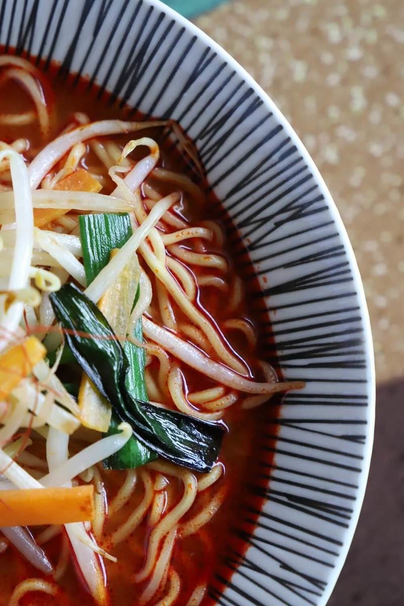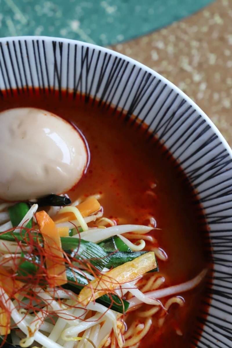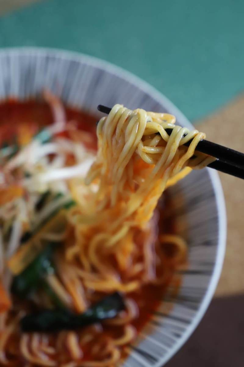 辛さを軽減するために茹でたり炒めた野菜を多めにトッピングしても良さそうです。
