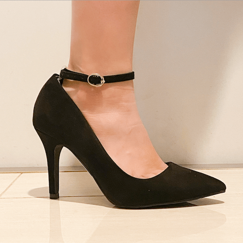 ですが、足のサイズが小さめであり、かかとの形も特殊なことから、どんなシューズを履いてもかかとがパカッと抜けてしまいます。そのため、ストラップ付きのパンプスしか選ぶことができません。