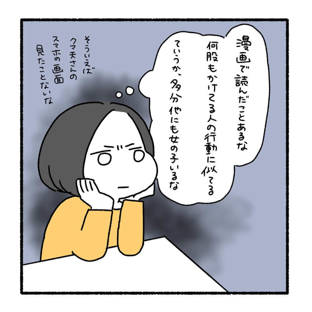ミワカモさん曰く、浮気の確実な証拠はなかったけれど、信用できない行動がちょくちょくあったとのこと。お付き合いには誠実さが必要なのに、クマ夫は何やっているんだと怒りたくなります!!(笑)