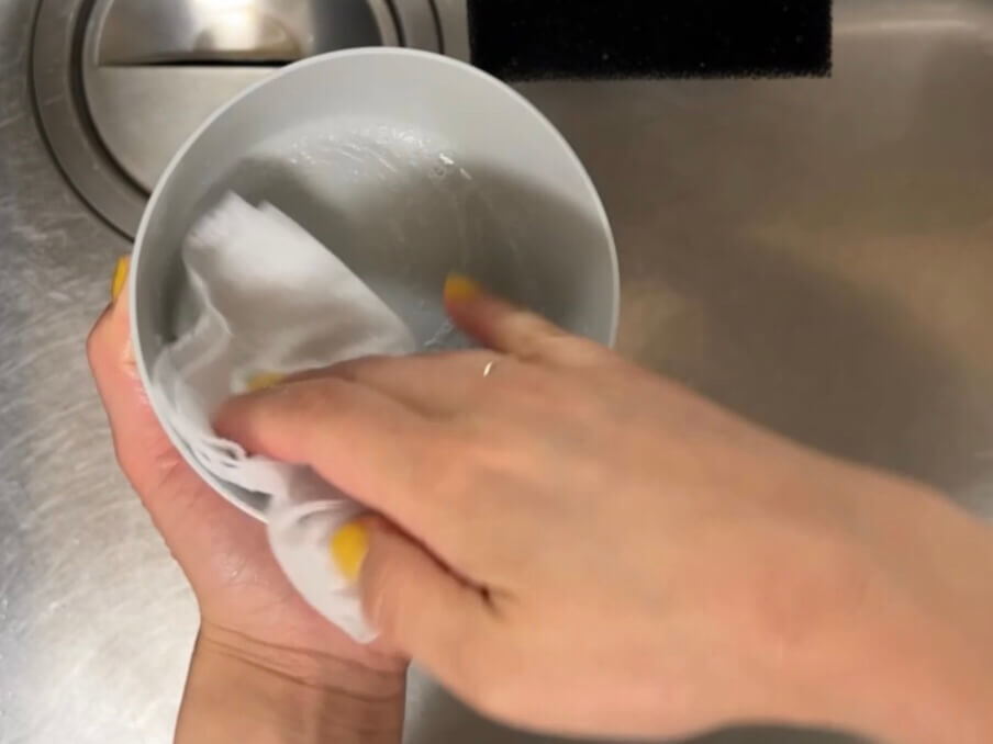 続いては、シンクの掃除に使ってみました。普通のスポンジと違って面が広く、また自由自在に形が変形するので、蛇口の細かい部分もしっかり掃除できました。