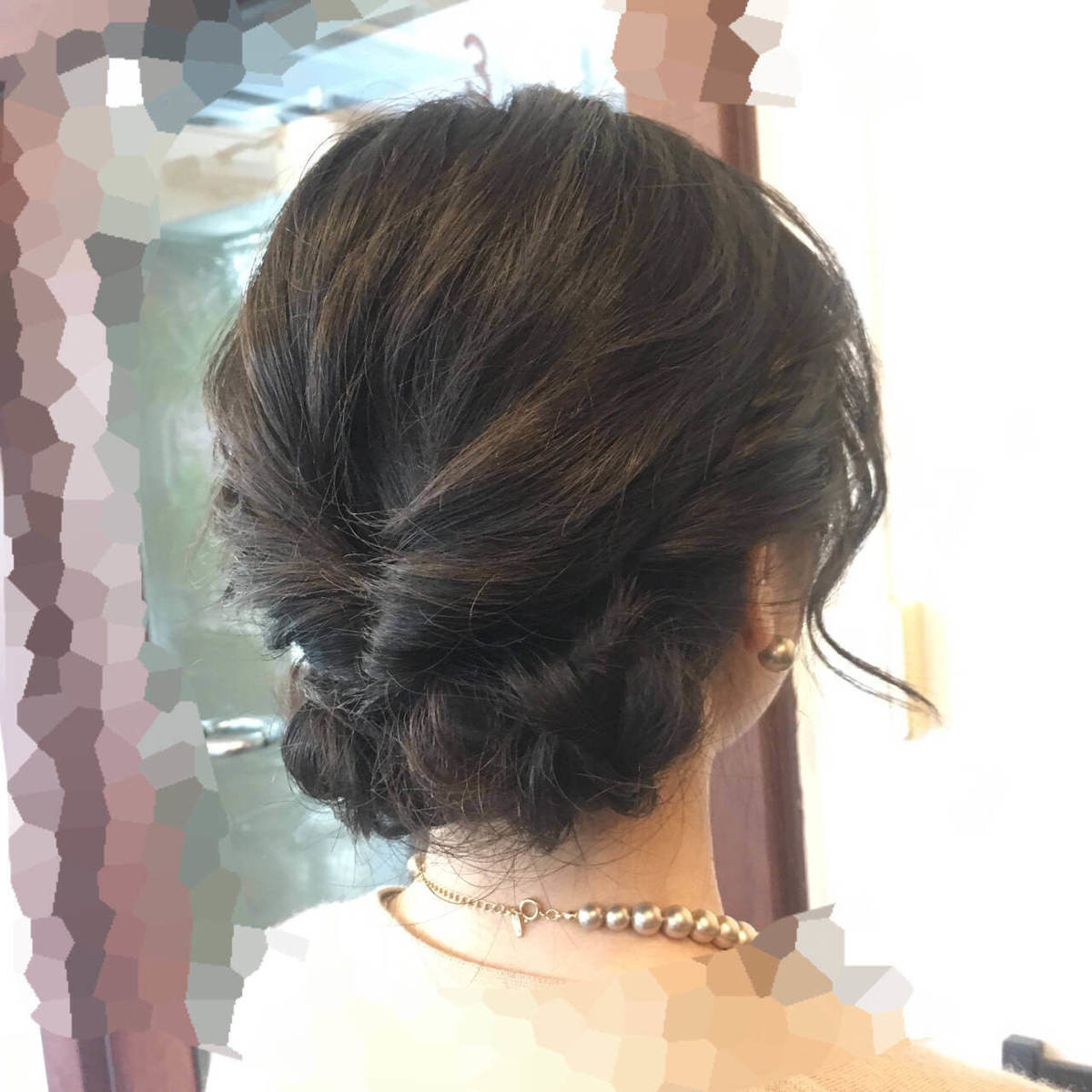 低めの位置でシニヨンを作る上品なヘアアレンジです。凝っているように見えますが、くるりんぱと三つ編みを組み合わせるだけの簡単なヘアアレンジなので、忙しい朝にもぴったりですよ。